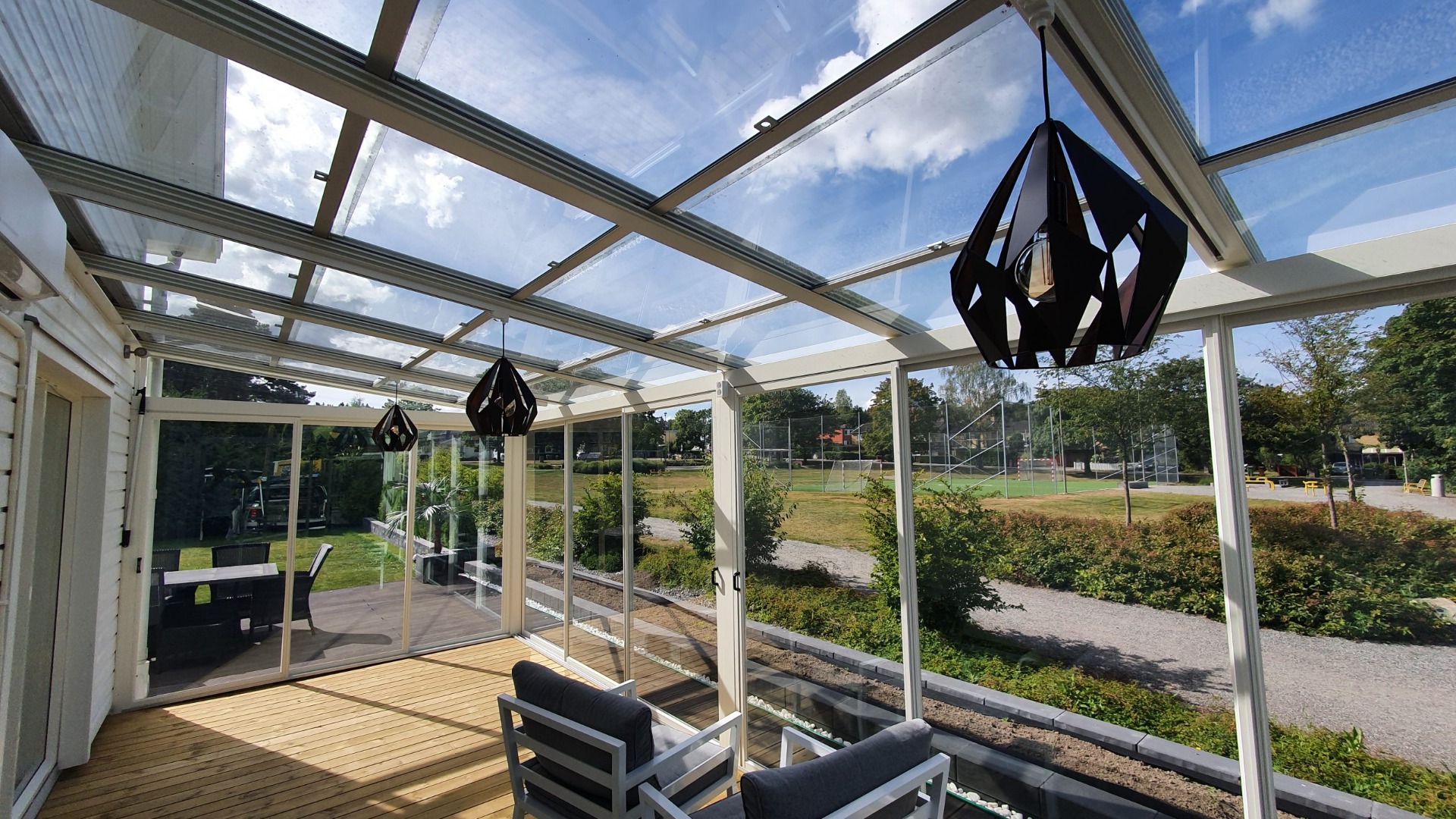 Otwierany szklany dach oferuje szereg praktycznych i praktycznych zalet w porównaniu ze stałym szklanym dachem. Sprawia, że taras jest bardziej elastyczny, komfortowy i funkcjonalny przez większą część roku, jednocześnie poprawiając klimat wnętrza i dodając wrażenia bliskości natury.